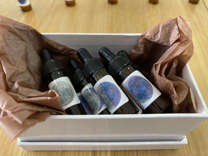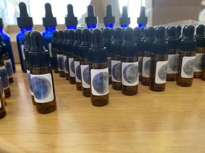 I include a lunar chart for easy reference of when to move to the next bottle. The bottles are labelled 1-8 and display their moon shape so that you can match your essence with the current moon phase for optimal application.