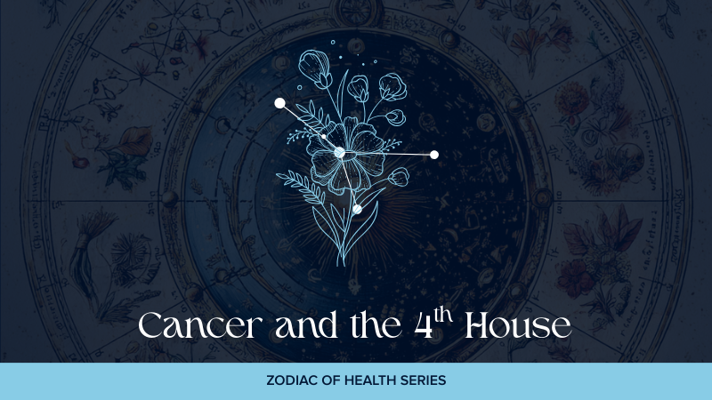 Cancer rules the stomach, breasts, and fluids of the body; Moon’s rulership and its connection to body cycles; 4th House themes of roots, family health, and gut-emotion connections.