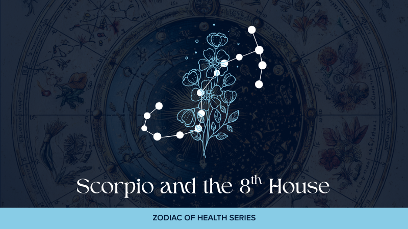Explore Scorpio’s rulership of reproductive organs, elimination channels, and regenerative processes; Mars/Pluto as rulers; 8th House crises, psychological influence and transformation in health.